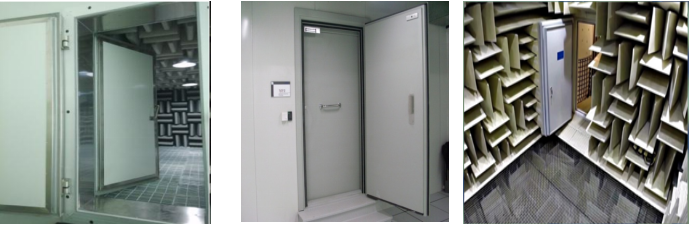 隔音門由內外兩套門組成,外門用於隔聲,內門用於吸聲。通外門是向外開,內門向內開 ,內門貼吸音尖劈,門開口尺寸:1. 2M*2M。施工效果如圖。