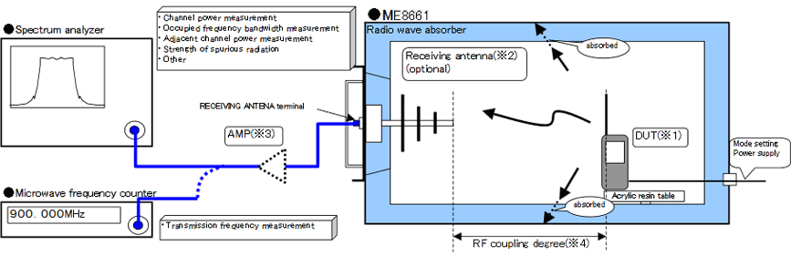 (能夠評估純傳輸特性,因為測試無線電波不會泄漏到外部,屏蔽盒中也不會有多個i-pass)
